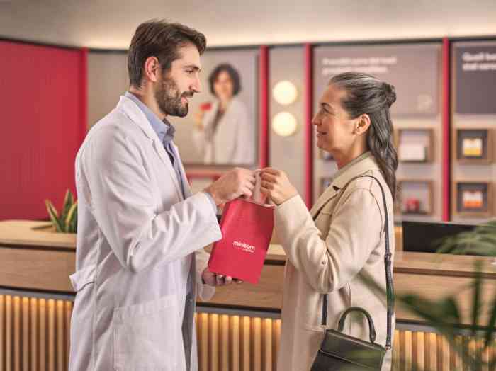 Amplifon's audiologist is giving a pair of invisible hearing aids to a client