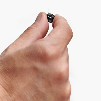Das super diskrete, maßangfertigte Im-Ohr Hörgerät aus Titan mit miniaturisierten Komponenten.