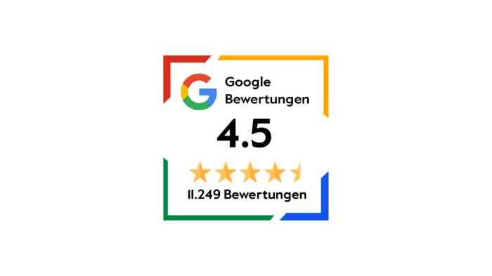Über 11.000 Google-Bewertungen für unsere über 600 Fachgeschäften in Deutschland – mit einem Durchschnitt von 4,5 Sternen.