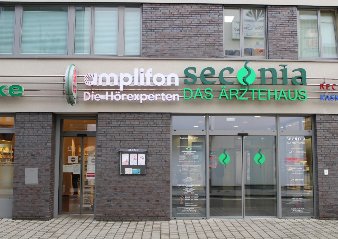Öffentliche Verkehrsmittel Unsere Filiale finden Sie im Ärztehaus Seconia in der Etage 1a. Der Busbahnhof ist nur etwa 500m entfernt und der Zug hält direkt vor dem Ärztehaus.