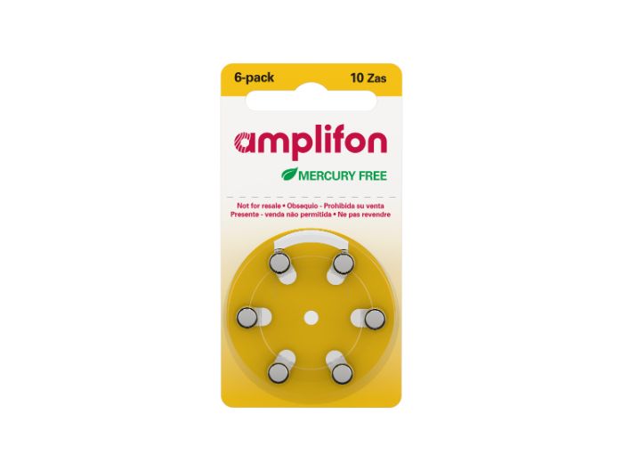 Ein Paket der Amplifon Batterien besteht aus 6 quecksilberfreie Hörgeräte-Batterien mit 1,45 Volt, die nicht wiederaufladbar sind. Erhältlich sind sie in den Größen Air 10 AE, Air 13 AE, Air 312 AE oder Air 675 AE.