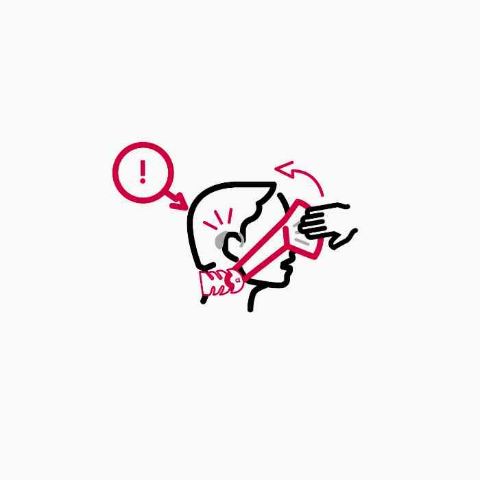 Lorsque le porte-masque est sur le cou, relever le masque sur la bouche et le nez.