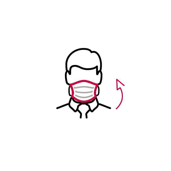 Étape 3 : Lorsque l’accroche-masque est derrière votre cou, relever le masque sur la bouche et le nez.
