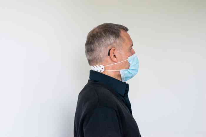 Afin de limiter les risques de perte et pour plus de confort, Amplifon propose à tous ses clients un accroche-masque. Cet accessoire permet simplement d’attacher le masque derrière la nuque et non plus derrière les oreilles, évitant ainsi le contact avec les aides auditives. Les élastiques du masque viennent se fixer dans de petites encoches, de manière adaptée à la nuque de chacun. Fabriqué en plastique souple et anti-dérapant, l’accroche-masque se nettoie facilement pour une réutilisation illimitée.