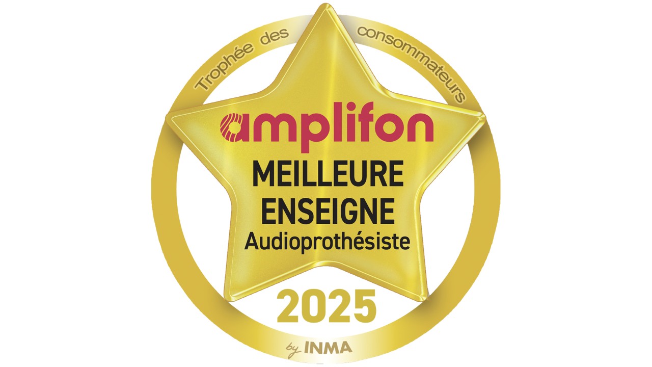 Pour la 6e année consécutive, Amplifon a été élue Meilleure Enseigne Audioprothésiste 2025⁵ par les consommateurs, avec une note exceptionnelle de 8,66/10. Une distinction qui récompense l'expertise et le service d'excellence du réseau Amplifon.